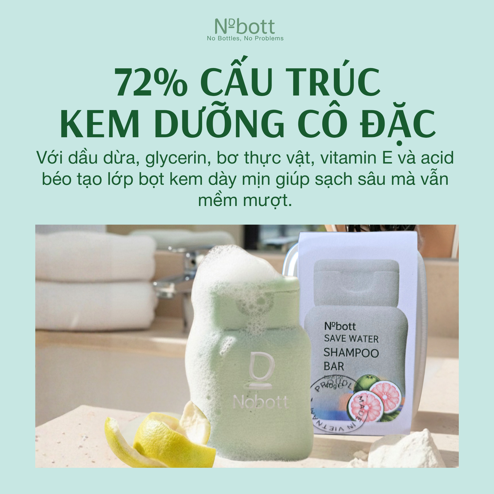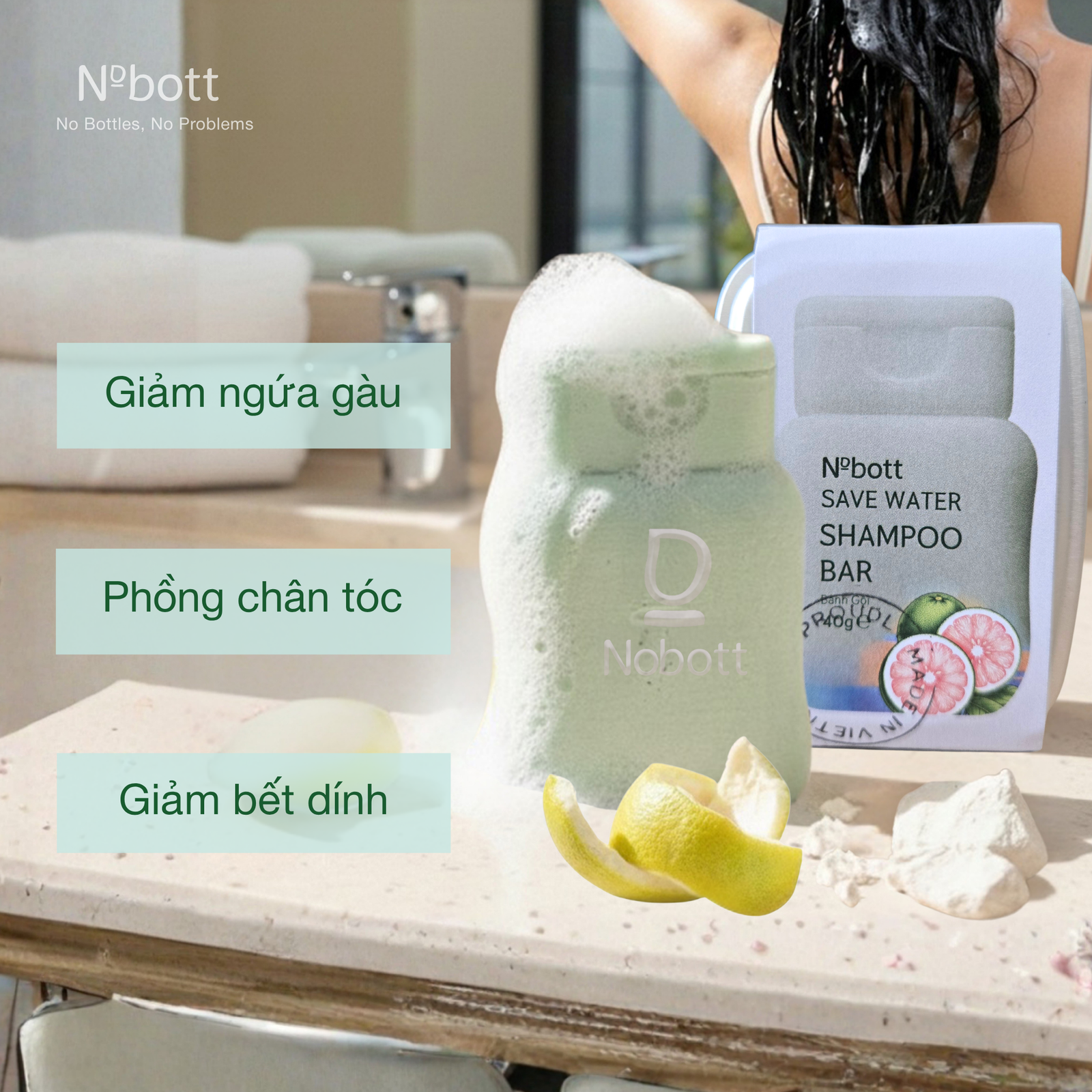 Bánh gội Nobott save water – Vỏ bưởi hòa bình (40g) | Hỗ trợ giảm gàu – Giảm ngứa- Phồng tóc – Làm sạch da dầu