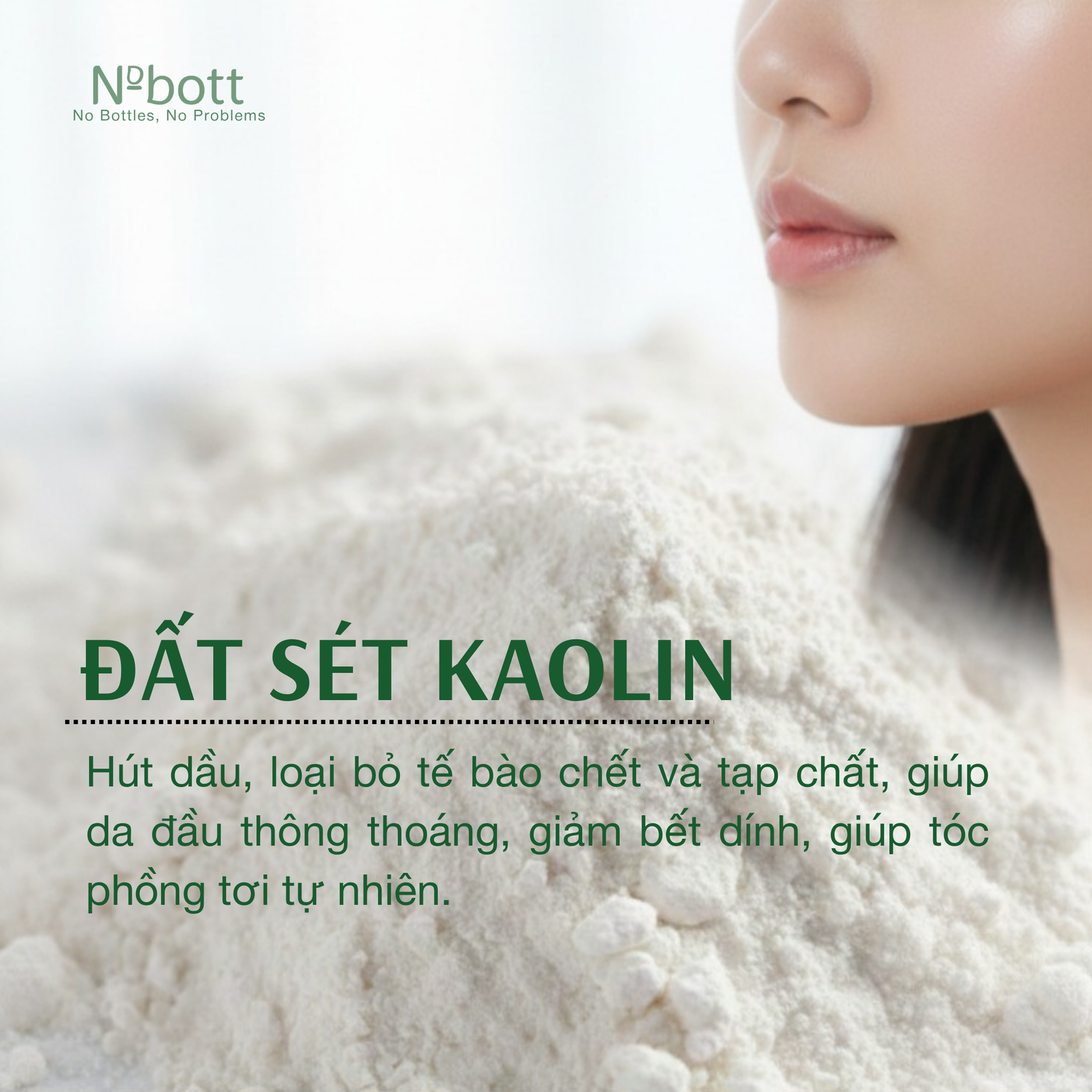 Đất sét cao lanh Kaolin giúp hấp thụ dầu thừa, làm sạch bụi bẩn, tạp chất và hỗ trợ loại bỏ tế bào chết tích tụ trên da đầu, từ đó giúp da đầu thông thoáng hơn và tóc có độ phồng tự nhiên.