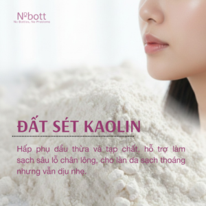 Đất sét Kaolin: Hấp phụ dầu thừa và tạp chất, hỗ trợ làm sạch sâu lỗ chân lông, giúp da sạch thoáng nhưng vẫn dịu nhẹ