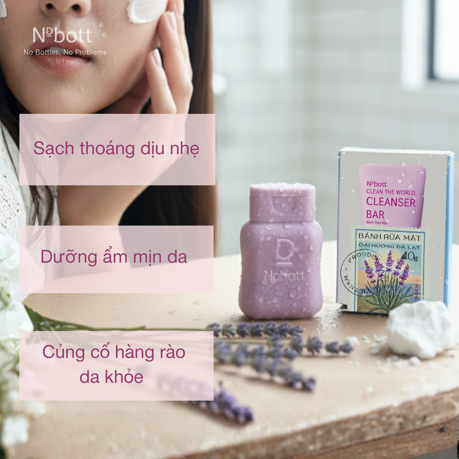 Bánh Rửa Mặt Nobott Clean The World – Oải Hương Đà Lạt là giải pháp làm sạch da xanh, dạng bánh cô đặc không chứa xà phòng, thân thiện với môi trường và an toàn cho làn da.